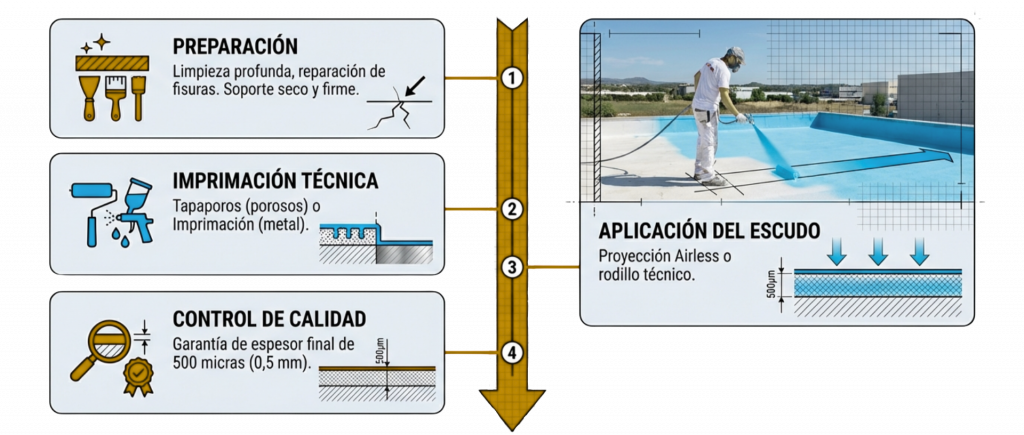 Nuestra metodología certificada garantiza que el escudo funcione a pleno rendimiento sin necesidad de obra civil invasiva: